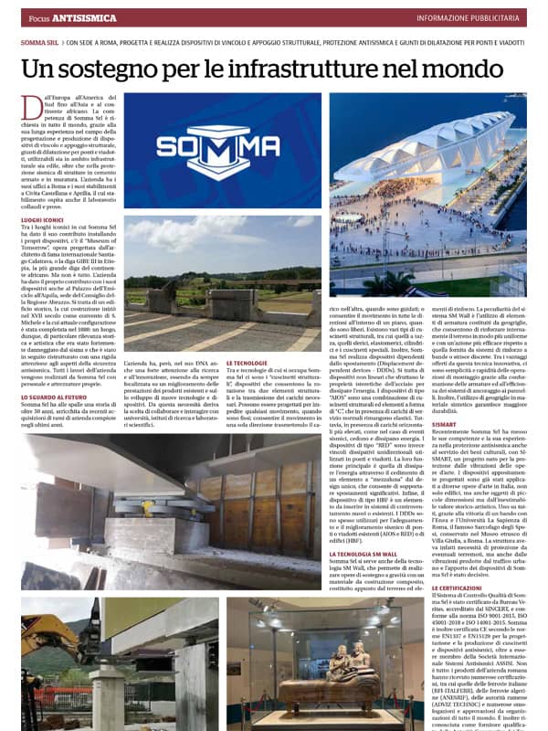 SOMMA is an Italian engineering company highly specialized in the design and production of structural restraint and support devices, road and railway expansion joints, and anti-seismic devices.