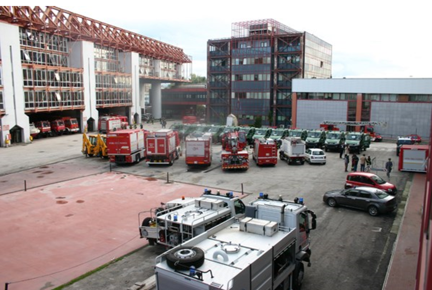 The building was designed according to the standards of the years ’80. The fire station was designed before the earthquake of 1980. After the earthquake of 10 the city of Naples was inserted in a seismic category much more strictly. In fact the fire station was seismically adatped following the rule that the fire station can have during an emergency situatuion as an earthquake. On the top of the concreete towers, were applied anti seismic devices. Were used devices that were a mix between teflon and neoprene, the ancestor devices of the modern antiseismic devices.